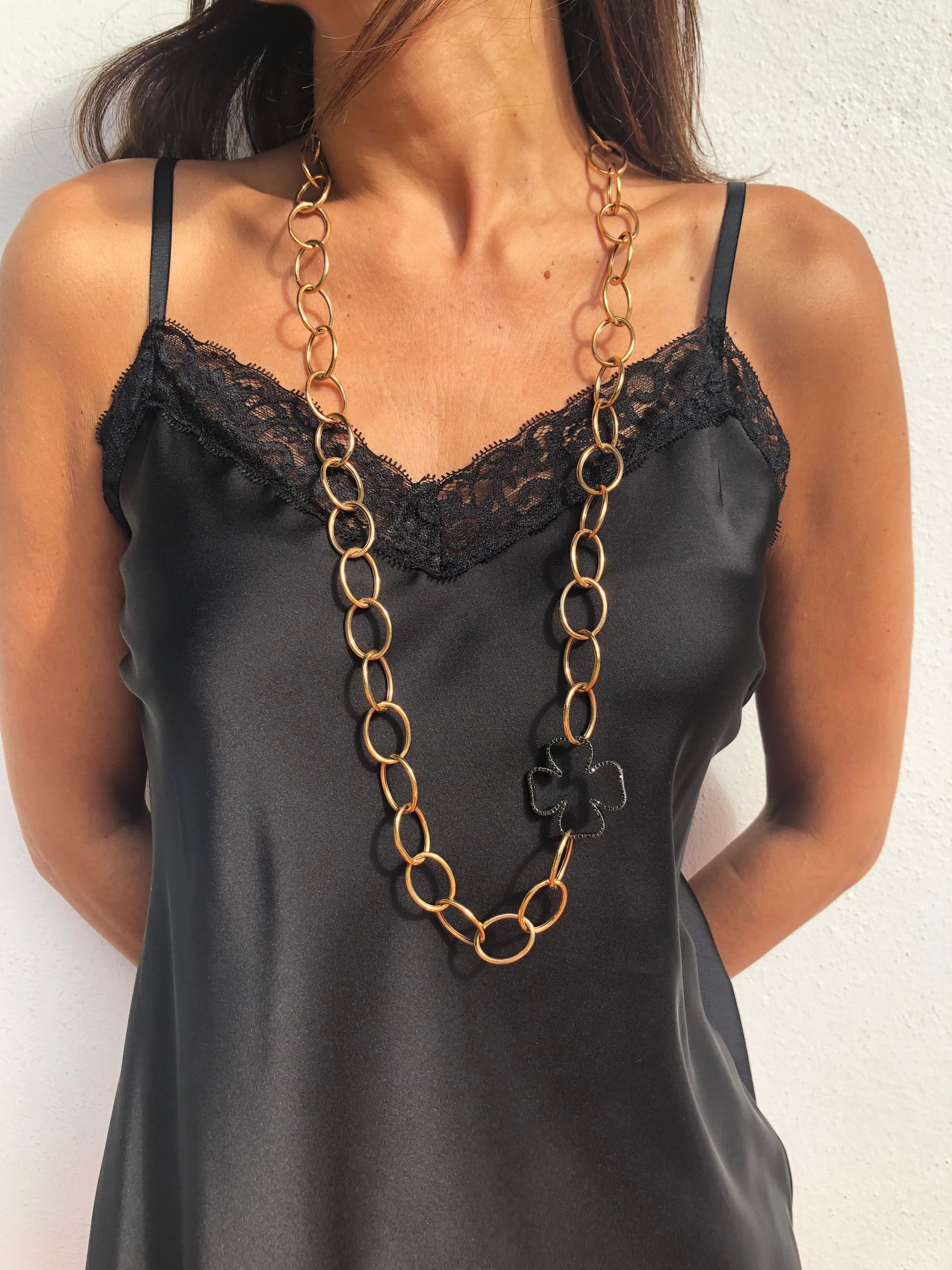 COLLAR LARGO DE ANILLAS Y TRÉBOL