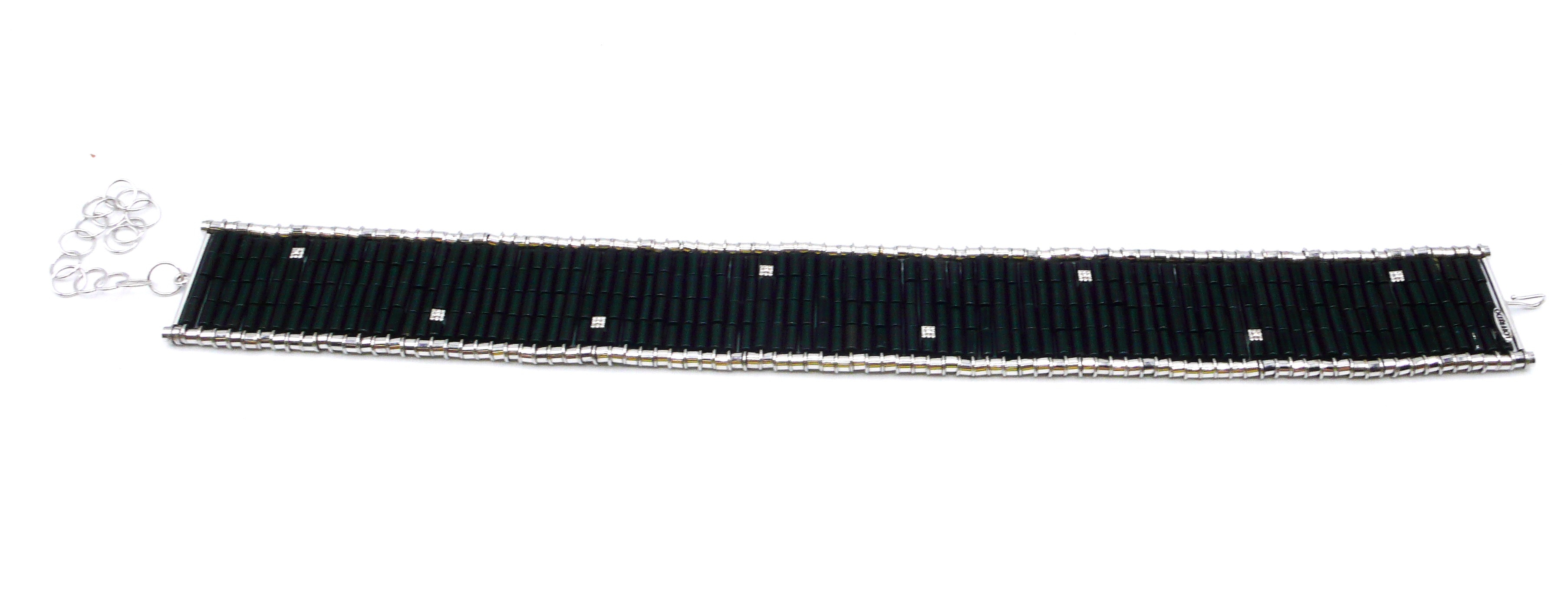 COLLAR – GARGANTILLA DE ORO BLANCO Y ONIX, CON SETENTA Y DOS DIAMANTES EN TALLA BRILLANTE.