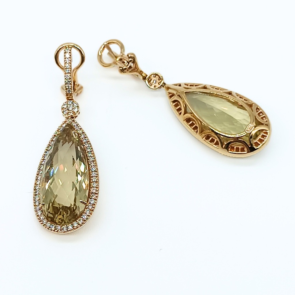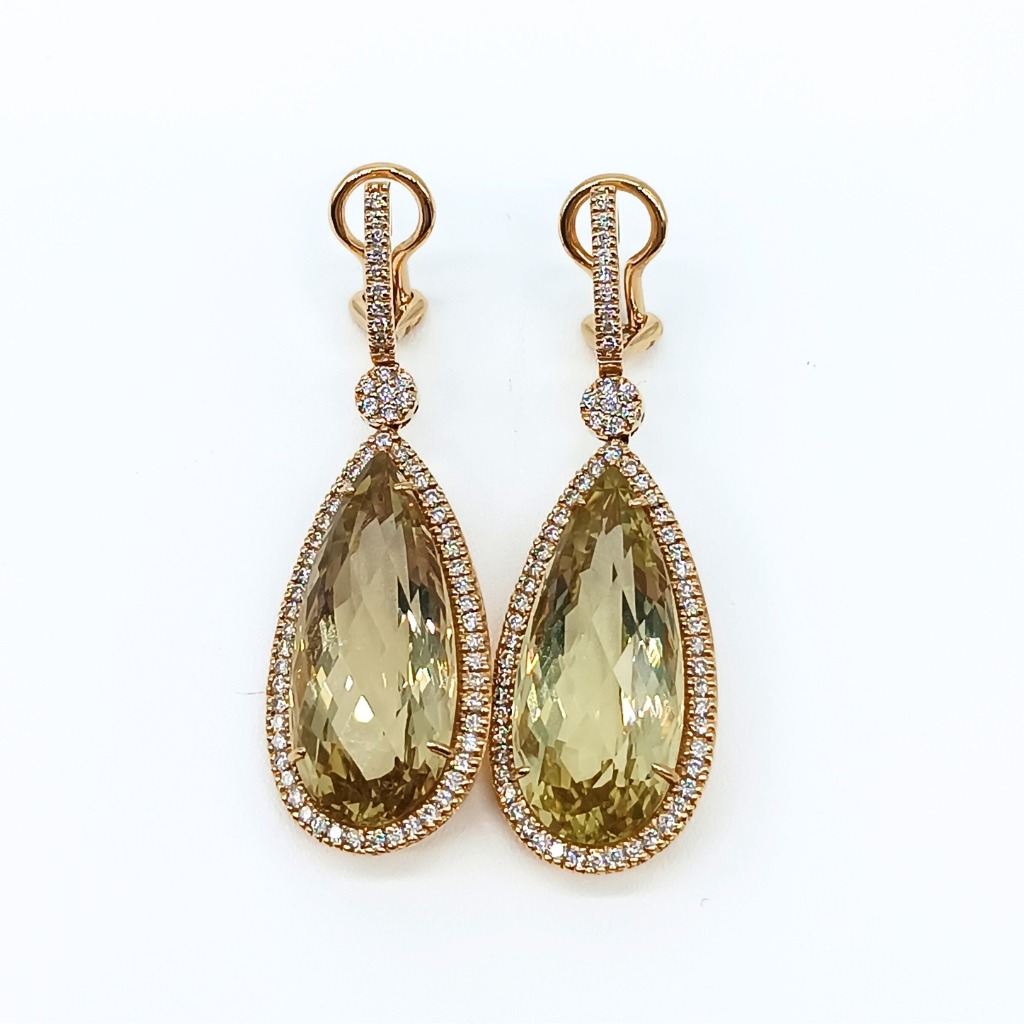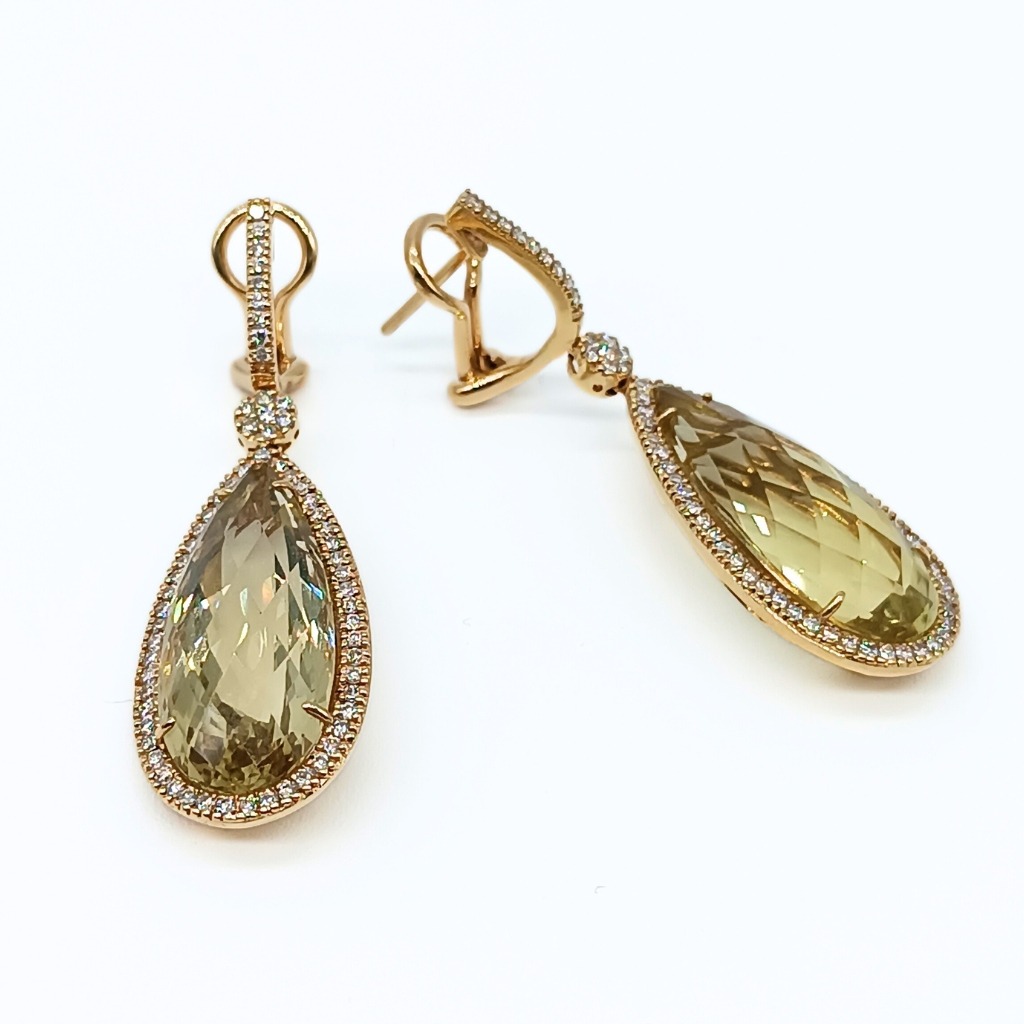 PENDIENTE DE ORO AMARILLO, 2 CUARZO LIMÓN Y 130 DIAMANTES EN TALLA BRILLANTE.