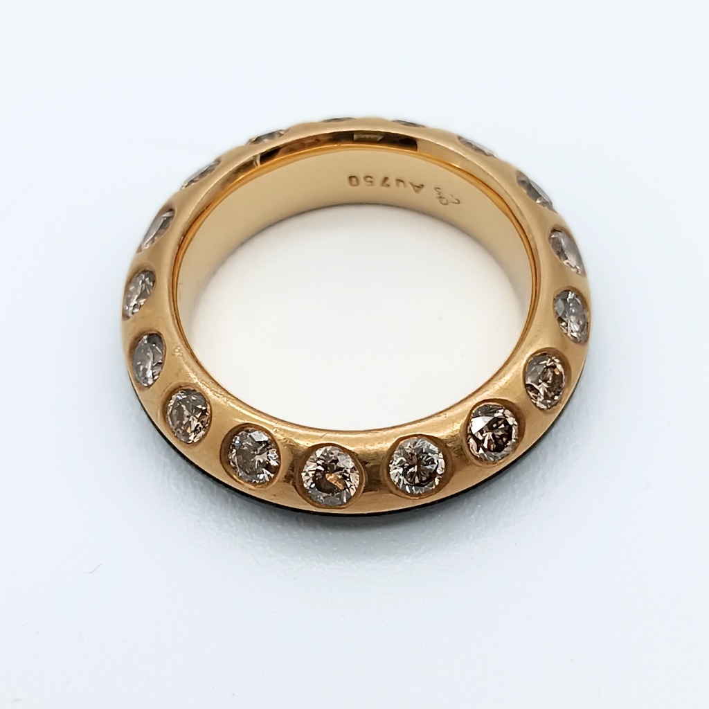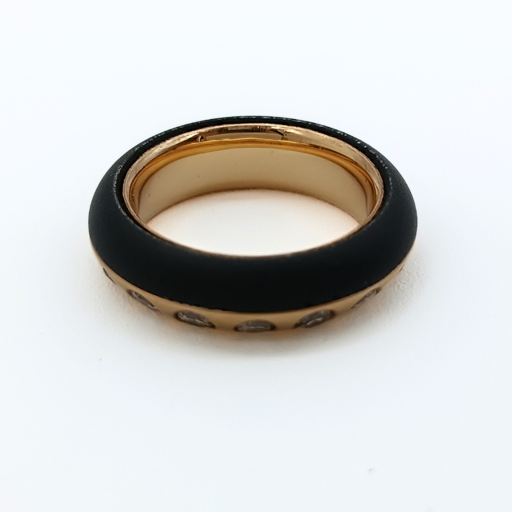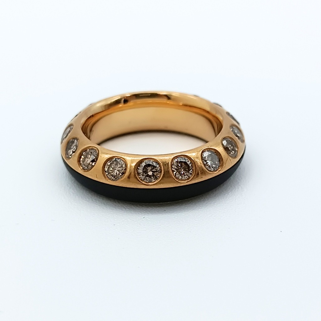 SORTIJA – ANILLO DE HIERRO NEGRO, ORO ROSA  Y DIECISIETE DIAMANTES TALLA BRILLANTE COLOR MADEIRA.